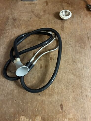 - İki kanallı (dual-head) stetoskop, elastik qara hortum və paslanmayan metal borular.