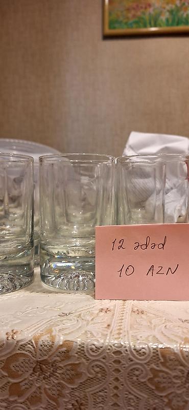 1)Kiçik ölçülü, qızıl kantlı,zərif armudu stəkanlar. Təzədirlər, 12 dənədir. Qiyməti 20m. 2)”Sprite” böyk ölçülü, su-sok stəkanları. Təzədirlər, 5 dənədir. Qiyməti 5m. 3)30 ədəd su,sok stəkanları, ...