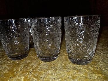 Хрустальные стаканы времён СССР В наличии 19 штук 3 штуки со сколом 3 разных рисунка Цена 10 азн за штукуGiriş•Qeydiyyat
