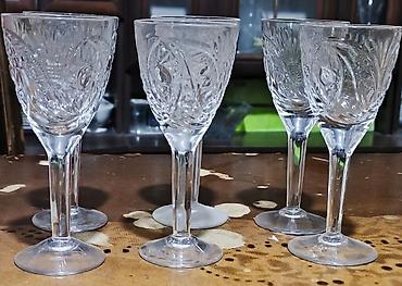 - Kəsim naxışlı saplı qədəhlər (6 ədəd): Şəffaf şüşədən, yüksək ayaqlı, kasa hissəsində kristalvari dərin kəsim ornamentləri. Aperitiv, desert şərabı və ya likör üçün ideal ölçü.