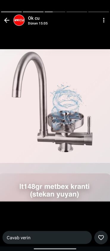 - İnteqrə olunmuş stəkan/yuyucu qab yuyucu başlıq: kranın gövdəsində dairəvi platforma və fırlanan başlıqla stəkanları, şüşələri və uşaq butulkalarını sürətli yuma imkanı.