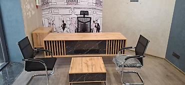Direktor kabinet dəsti – müasir ofis üçün tam komplekt kreslolar qiymete daxil deyil!!! Tərkib: kreslolar daxil deyil - Geniş iş masası: taxta teksturalı (ceviz tonları), ön hissədə metalik zola...