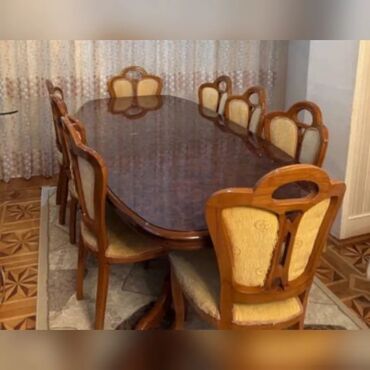 Stol stul dəsti. Hec bir problemi yoxdu. Əla vəziyyətdədir. Stolun 2.20,uzunlugu, 100 eni. Stol açılır, açılanda daha böyük olur. Stol qoz ağacındandı. Qiymət: birlikdə 280 manat Ünvan: Nizami ray...