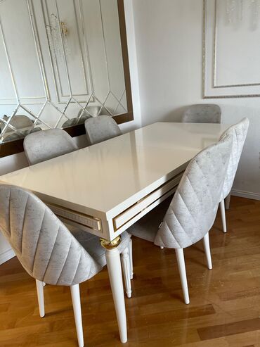 Qonaq otağı üçün, Yeni, Açılmayan, Dördbucaq masa, 6 stul