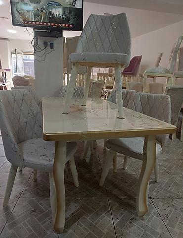 Stol stul tezedi yuksek seviyyede hazirlanib Stol mdf materialdi krasqasi masin boyasidi Stullar fistig agacindan hazirlanib 90×160 bagli veziyyetde 90×2 metre acilan veziyyetde Catdirilma qurasdir...
