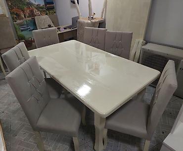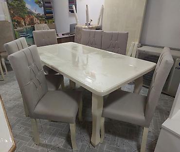 Stol stul tezedi yuksek seviyyede hazirlanib Stol mdf materialdi krasqasi masin boyasidi Stullar fistig agacindan hazirlanib 90×160 bagli veziyyetde 90×2 metre acilan veziyyetde Catdirilma qurasdir...