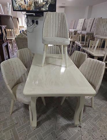 Stol stul tezedi yuksek seviyyede hazirlanib Stol mdf materialdi krasqasi masin boyasidi Stullar fistig agacindan hazirlanib 90×160 bagli veziyyetde 90×2 metre acilan veziyyetde Catdirilma qurasdir...