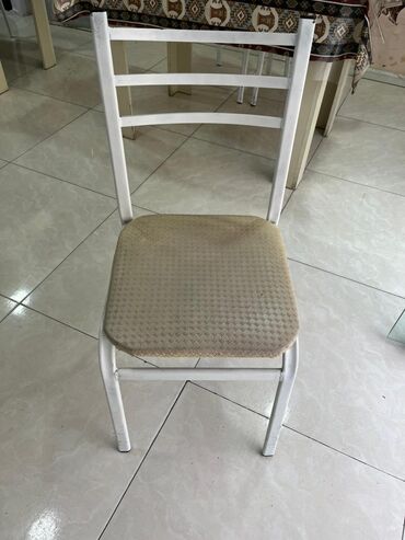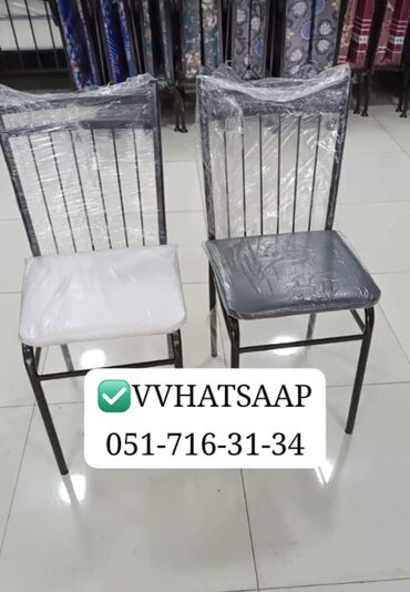 Qara metal çərçivəli, bənövşəyi rəngli oturacağı və kürəyi olan yeni stul. Stul, oturacağı və kürəyi üzərində naxışlı parçası ilə zərif görünüşə malikdir. Qonaq otağı, mətbəx və ya ofis kimi müxtəl...