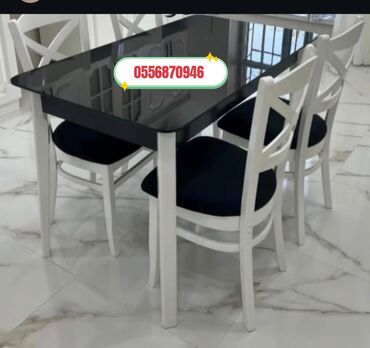 Mətbəx üçün, Yeni, Açılmayan, Dördbucaq masa, 4 stul