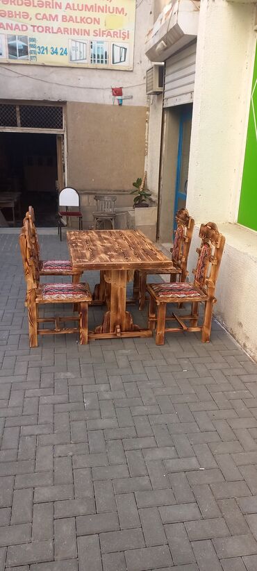 Yeni, Dördbucaq masa, 2 stul, Açılmayan, Skameykalar ilə, Alüminium, Azərbaycan