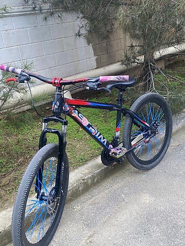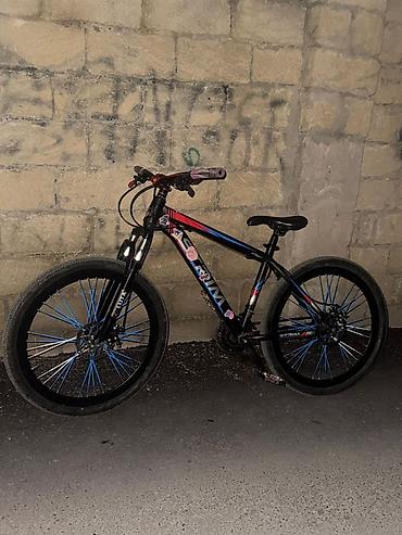 STrim dağ velosipedi - Brend/model: STRIM (gövdə üzərində loqo) - Çərçivə: yüngül alaşımlı, idman tipli geometrİya - Təkərlər: 26” ölçü, rəngli (mavi/qırmızı) eynəklərlə gücləndirilmiş şinlər - As...