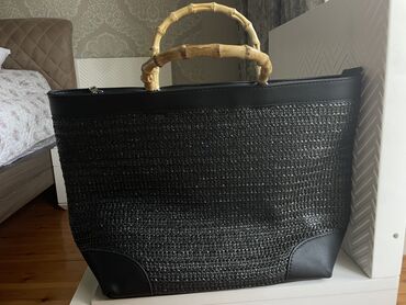 QaraStradivarius böyük həsir çanta.Kənarları kojadır,qulpu bambukdur.1 neçə dəfə götürmüşəm yeni kimidir.