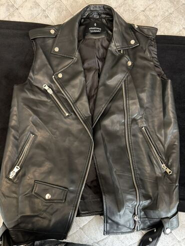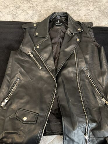 Stradivarius qolsuz motosikletçi üslublu kişi gödəkçəsi (və ya uniseks) – model: dəri görünümlü vest.