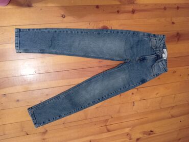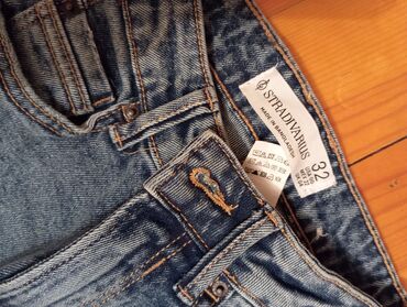 Stradivarius cins şalvar - Ölçü: 32 (etiketdə göstərilib) - Rəng: klassik mavi denim, açıq yuyulma effekti - Model: düz kəsim, bel hissəsi orta hündürlükdə - Detallar: 5 ciblidir (2 arxa, 3 ön), d...