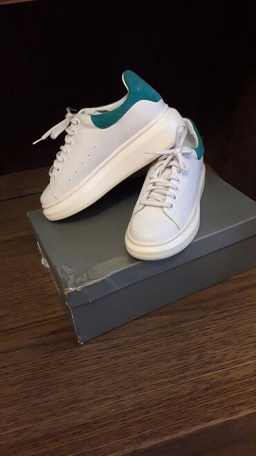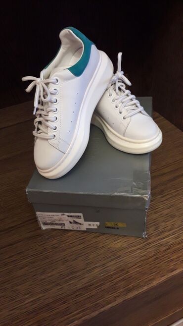 Ağ rəngdə, qalın dabanlı dəri idman ayaqqabısı. Ayaqqabının arxa hissəsində yaşıl rəngli əlavə detallar mövcuddur. İdman ayaqqabısı bağcıqlıdır və rahat geyimi təmin edir. Qalın dabanı sayəsində boyu vizual olaraq uzadır. Bu idman ayaqqabısı gündəlik istifadə üçün uyğundur.