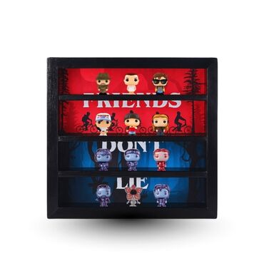 Stranger Things dünyasını öz evinə gətirmək istəyənlər üçün xüsusi hazırlanmış dekorativ Display Box. Yüksək keyfiyyətli taxtadan hazırlanmış bu qutu həm kolleksiya fiqurlarını estetik şəkildə nümayiş etdirmək, həm də interyerə özünəməxsus atmosfer qatmaq üçün idealdır. Qutunun ön hissəsi tematik dizaynla bəzədilmişdir: Üst panel - qırmızı fon və məşhur velosiped siluetləri Orta panel - serialın ikonik "FRIENDS DON'T LIE" ifadəsi Alt panel - qaranlıq, mavi atmosferdə Upside Down motivləri Arxa hissəsində isə parlaq qırmızı "STRANGER THINGS" loqosu ilə tamamlanır və məhsula premium görünüş bəxş edir.