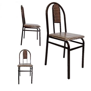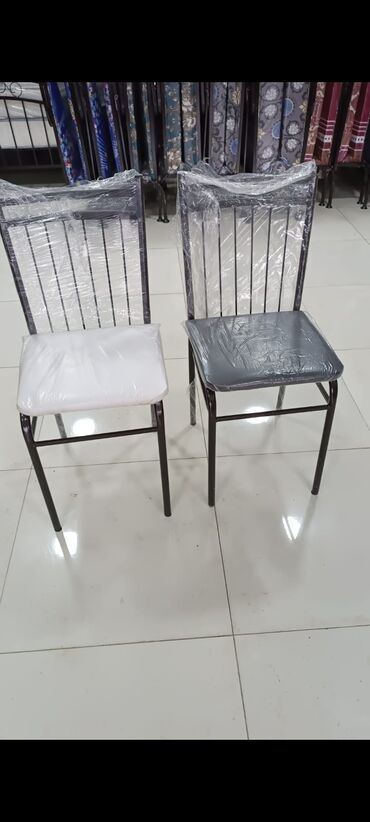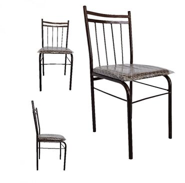 Qara metal çərçivəli, bənövşəyi rəngli oturacağı və kürəyi olan yeni stul. Stul, oturacağı və kürəyi üzərində naxışlı parçası ilə zərif görünüşə malikdir. Qonaq otağı, mətbəx və ya ofis kimi müxtəl...
