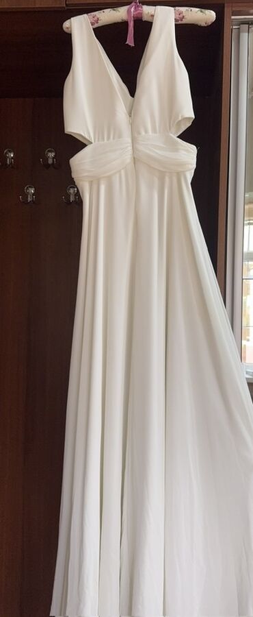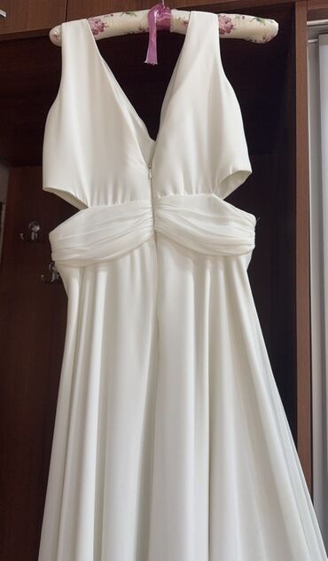 Ölçü detalları fotolarda görünən modelə uyğun standart qadın ölçülərinə yaxın. Geyimin ümumi xətti bədəni incə göstərir, bel xəttini vurğulayır və ətək hərəkətdə zərif dalğalanır.