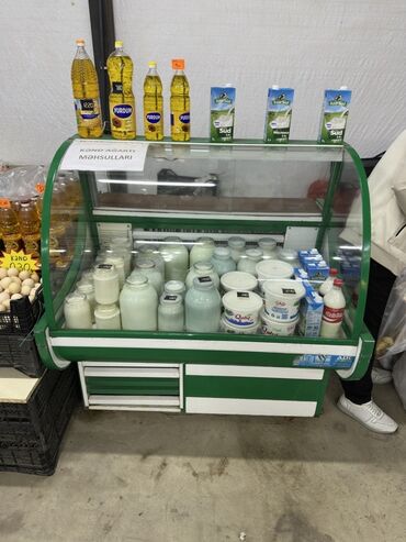 Mağaza üçün açıq vitrinli soyuducu - Tip: Açıq önlü, çoxrətli market soyuducusu (self-service) - Korpus: Paslanmayan metal karkas, yaşıl dekor paneli - Rəflər: Tənzimlənə bilən çoxsəviyyəli metal ...