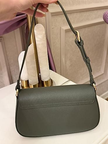Qadın çantası – çiyin/çapraz model - Rənglər: zeytun-yaşıl korpus, tünd qəhvəyi qapaq və eyni rəngdə çıxarıla bilən, tənzimlənən çiyin kəməri (daxildir). - Material: üst hissə hamar dəri effektli,...