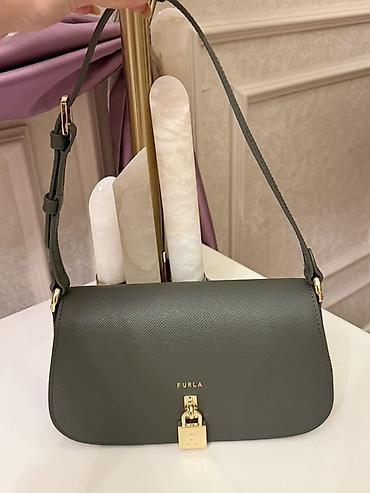 FURLA Viva mini Tünd yaşıl rəngli, kroko teksturalı qadın çiyin çantası Az işlədilib. Çölü və içi təmiz dəridir. Gündüz və gecə geyimləri ilə kombinlənə bilən modeldir. - Material: cilalı, kroko ...