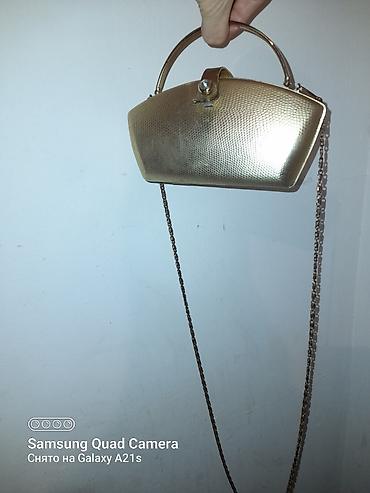 Qızılı rəngli, timsah naxışlı qadın çantası. Tam problemsiz çantadı. çantanın uzunluqu 25 eni 30 sm