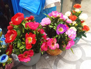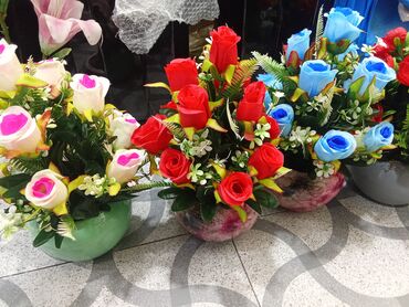 - Müxtəlif rəng və formalarda süni güllərdən yığılmış hazır kompozisiyalar.