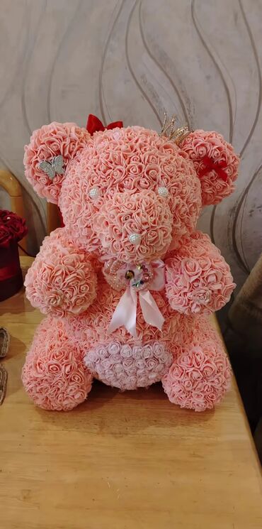 Qızılgül ayısı – dekorativ hədiyyə fiquru - Dizayn: Yüzlərlə qırmızı qızılgül ləçəyindən ibarət ayı fiquru. Ön hissədə qara lentli bəzək yazıları “Just for you”, “Happy everyday”, “Romantic” kimi ...Giriş•Qeydiyyat