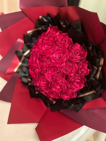 Satınalma üçün zərif dekorativ gül buketləri. Məhsul xüsusiyyətləri: - Material: atlas parça/qaytanla hazırlanmış dekorativ qızılgüllər (canlı gül deyil). - Rənglər: qırmızı, krem, qızılı/karamel ...
