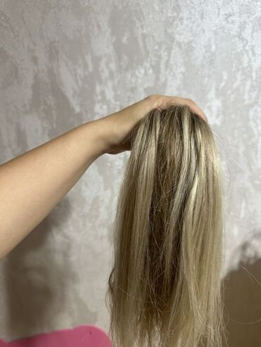 Süni saç tutması – sarı/boz balyaj tonlarında, düz teksturalı.