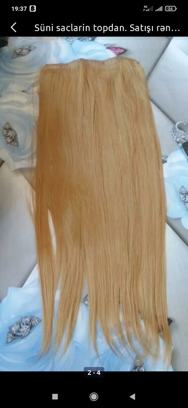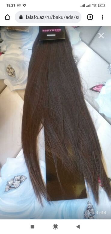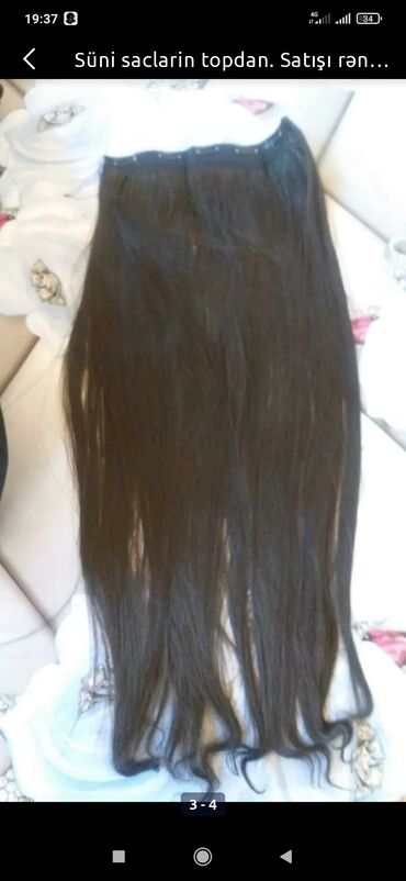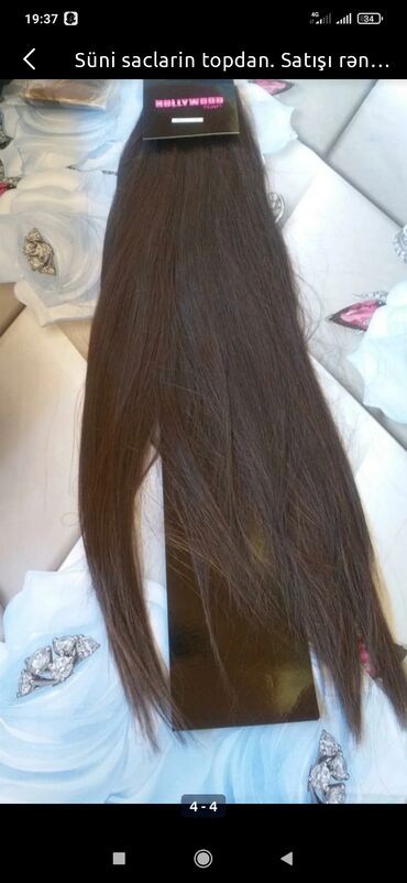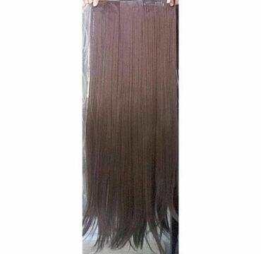 Təbii insan saçı – tünd qəhvəyi/şabalıd tonunda, qalın həcmlidir. Şəkildə ölçü xətti ilə göstərilib: təxmini uzunluq 55–60 sm civarında. Rəng tək tonlu, təbii parıltılıdır; 900e alinib 1 hefte taxi...