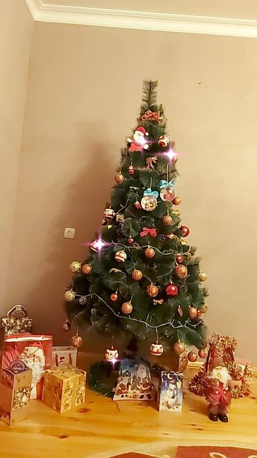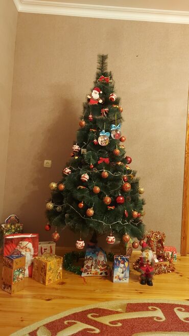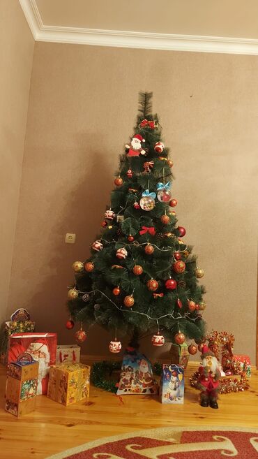 Yeni il bayramı üçün süni şam ağacı və bəzəklər dəsti kecen il alinib 120 manata - Təxminən 2.70 m hündürlüklü, sıx budaqlı, iynəyarpaqlı görünüşlü süni şam ağacı