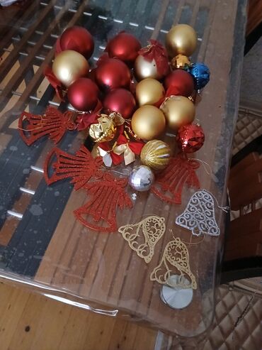 - Qırmızı, qızılı və gümüş rəngli bərq vuran zınqırov və mələk fiqurları