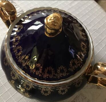 Zərif klassik üslubda böyük süfrə yemək dəsti. - Material: porselen - Rəng və naxış: tünd lacivərt kənar, üzərində qızılı ornamentlər; mərkəzdə rəngli süjetli rəsmlər - Komponentlər: müxtəlif ölçü...