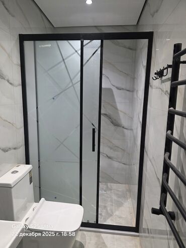 Şüşə duş kabinası – sürüşən qapılı, mat və şəffaf hissələrin kombinasiyası ilə. - Çərçivə: mat qara alüminium/profil, müasir minimal dizayn - Qapı: iki hissəli sürüşən sistem, səssiz rels və yuxarı...