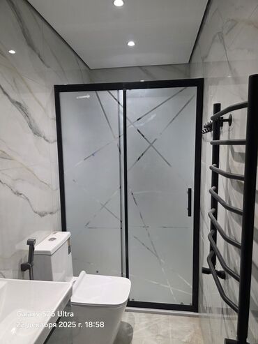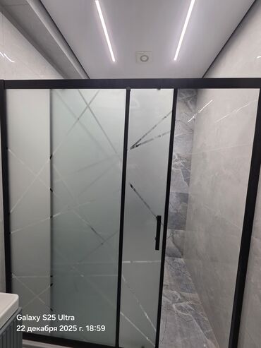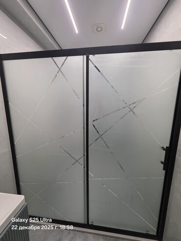 Şüşə duş kabinası – mat (qumlu) şüşəli, sürgülü sistem - Tip: Divar arası duş kabina sistemi - Süslü/mat (qumlu) temperli şüşə panellər – gizlilik və iz saxlamayan səth - İkiqanadlı sürgülü qapı m...