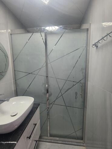 - Material: qalın temperli şüşə, mat (qumlu) faktura, dekorativ xətti naxışlı