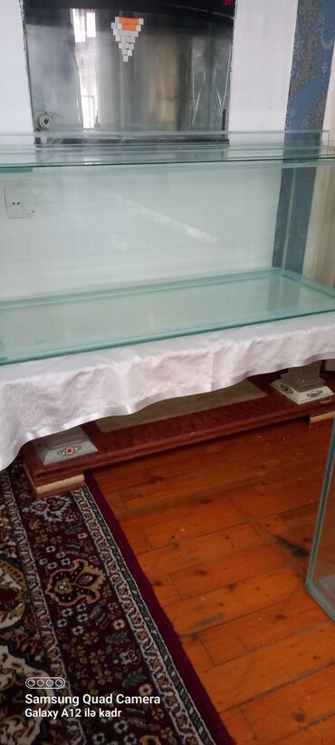 Uz 1.30 Eni-52 Hun-57 10luq şüşəylə yigilib 2 terefli akvarium balıqlarla birlikdə 350 manata satilir.bir terefinde xişnik baliqlar bir terefinde mirniy.1500 manata yigilib.unvan Bül-Bülə qəsəbəsi....