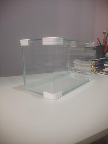 Şüşə akvarium - Ölçülər: təxminən 35 sm uzunluq, 19–20 sm en, 22–23