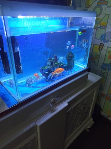 Başlıq: Аквартум,300 литра вмешаемости, Təsvir: Аквартум,300 литра вмешаемости, - Həcmi: təxminən 300 litr - Şüşə akvarium, ön və yan panellərdən geniş görüntü - Üst inteqrə LED/işıqlandırma xətt...