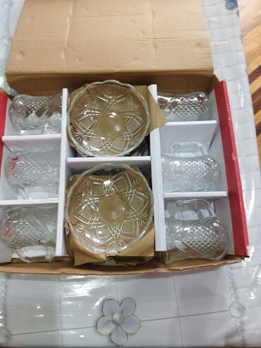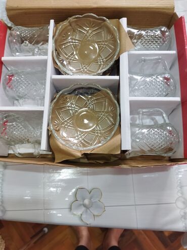 Şəffaf şüşədən hazırlanmış armudu stəkan və nəlbəki dəsti. 12 ededden ibaret destdir.. Basabahce brendidir.