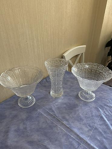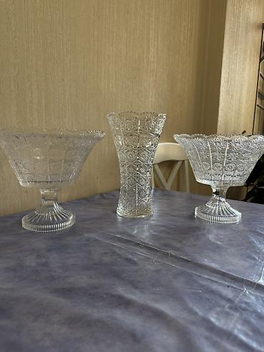 Qeyd: Set kimi bir-birini tamamlayan eyni naxışda üç dekorativ şüşə məmulat.