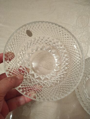 Şirniyyat/daqau desert qabları dəsti – 2 ədəd - Material: qalın şüşə gövdə, metal ayaqlıq - Dizayn: kəsimli (fased) naxışlar, dalğalı kənar, dekorativ optik parıltı - Forma: kasaya bənzər, ayaqlı ...