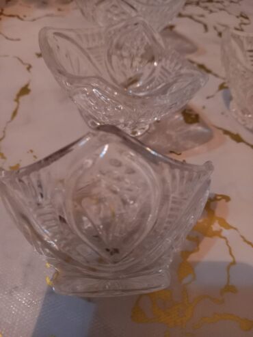 Şüşə qəlibli şirniyyat/meyvə qabları dəsti Şirniyyat, çərəz qabları satılır! - Material: qalın, şəffaf şüşə (kristal üslublu naxışlı) Zərif naxışlı, işıqda parlaq görünüş verən harmonik servis dəst...