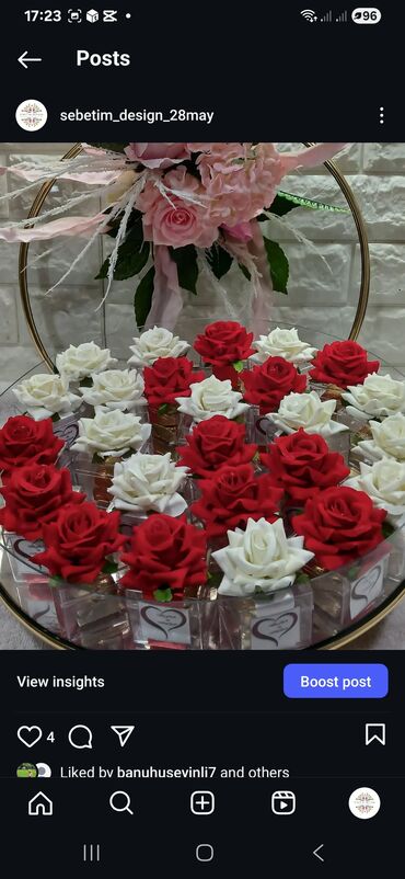 - Dekor: pastel çəhrayı gül kompozisiyaları, yaşıl yarpaqlar, lent və dekorativ detallarla bəzədilmiş