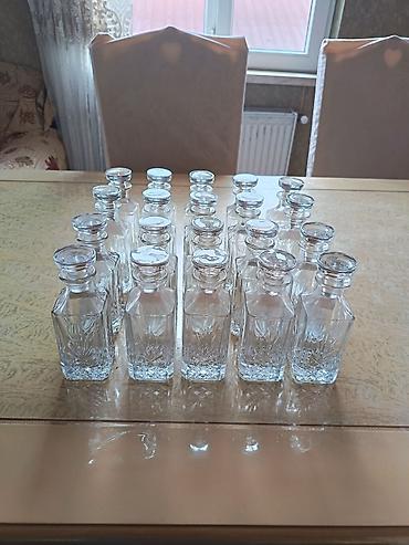 Şüşə karaf dəstləri - 2 fərqli dizayn: kəsimli klassik naxışlı model və hamar, modern kvadrat model. - Hər dəstdə 4 ədəd karaf var (ümumilikdə 8 ədəd). - Material: qalın, şəffaf şüşə. - Hər biri u...