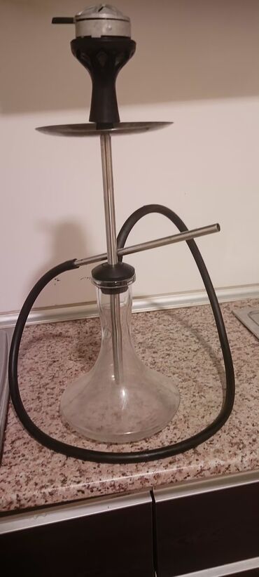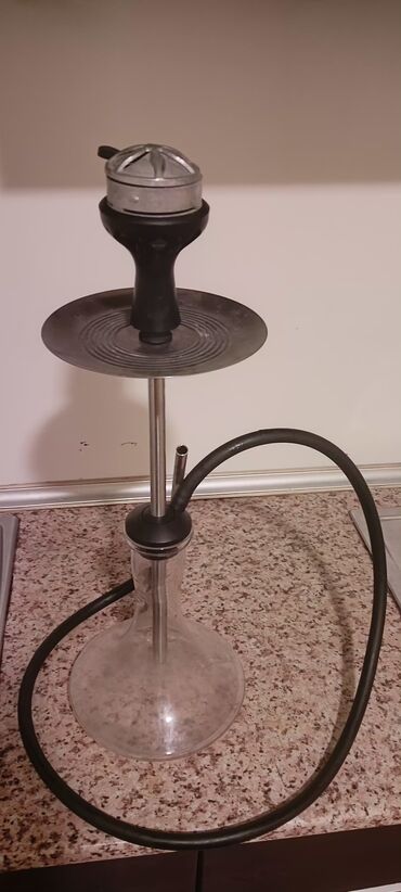 Nargilə dəsti - Şüşə kolba: iri həcimli, opal/iridescent effektli şüşə kolba, stabil geniş dib. - Gövdə: metaldan hazırlanmış, ortası spiral qoruyucu ilə bəzədilmiş gövdə; yan tərəfdə klapan. - Ba...
