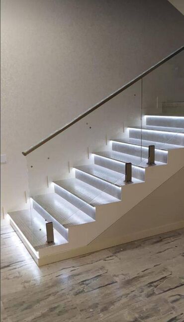 Təklifə daxildir: şüşə məhəccər panelləri, paslanmayan dayaqlar və ara bərkidicilər, metal tutacaq, pilləaltı LED işıqlandırma və kabel gizlətmə.