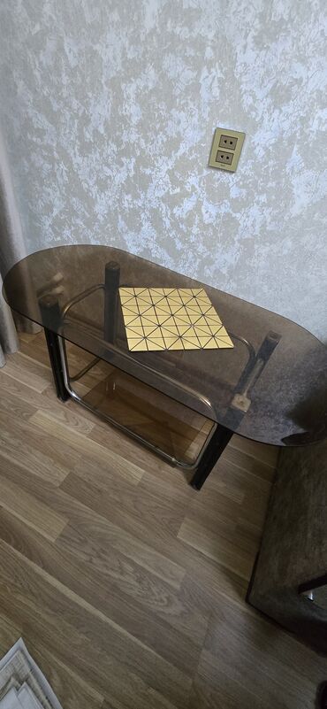 Qara şüşə sehpə/televizor altlığı - Material: qalın temperli qara