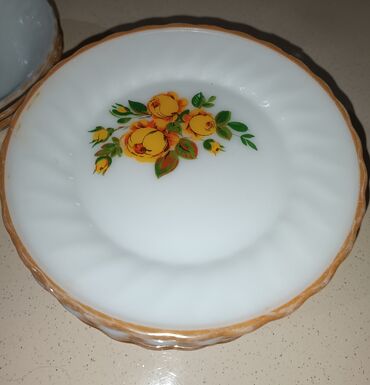 1 ədəd böyük yumru 6 boşqabı 1 ədəd kvadrat böyük 6 boşqabı (meyvəlik,tortluq istifadə etmək olar) 2dəst bir yerdə ayrıda satılır